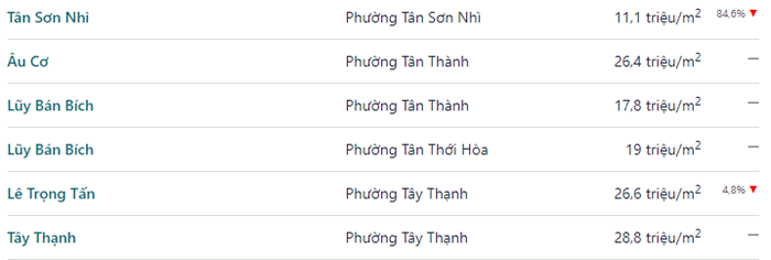 Bảng Giá Nhà Đất Quận Tân Phú Cập Nhật T12/2022